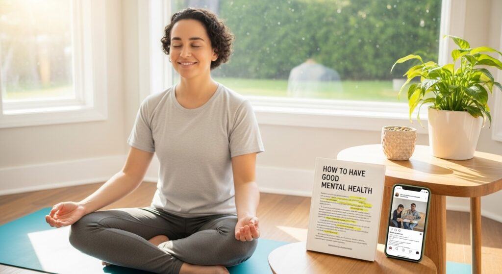 Sleep well: Sleep well: Each night, aim for 7-9 hours of good sleep. Poor sleep can worsen mental health issues like anxiety or depression.